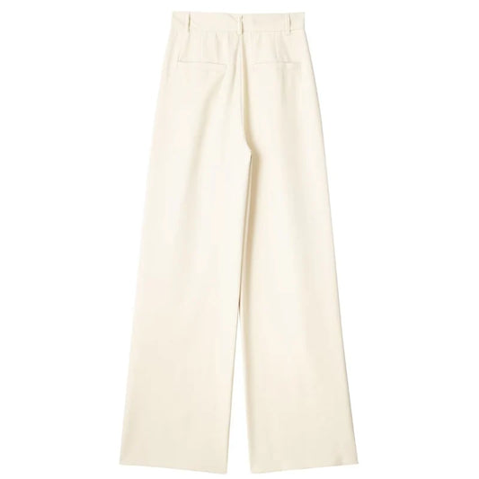 Women's Beige High-Waisted Palazzo Pants with Wide Legs