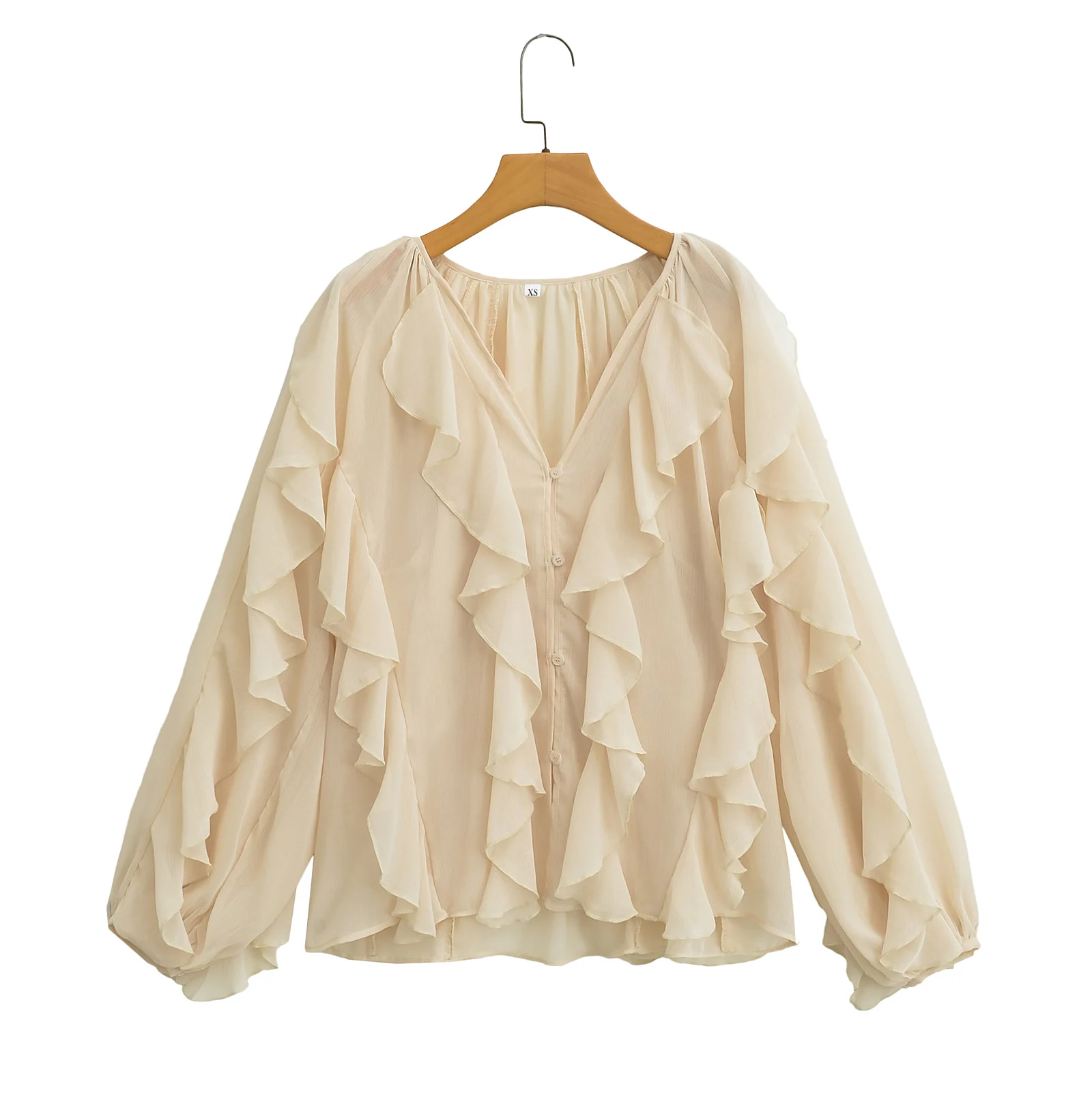 Women's Chiffon Blouse with Ruffles, Long Sleeves, Lightweight and Elegant