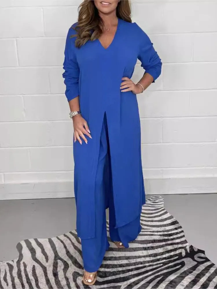 Women's Set with Long Overlay and Wide-Leg Pants - Elegant and Sophisticated Look