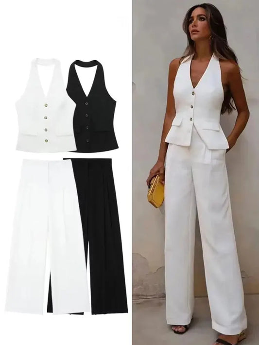 Women's Set: Asymmetrical Halter Top and Wide-Leg Pants